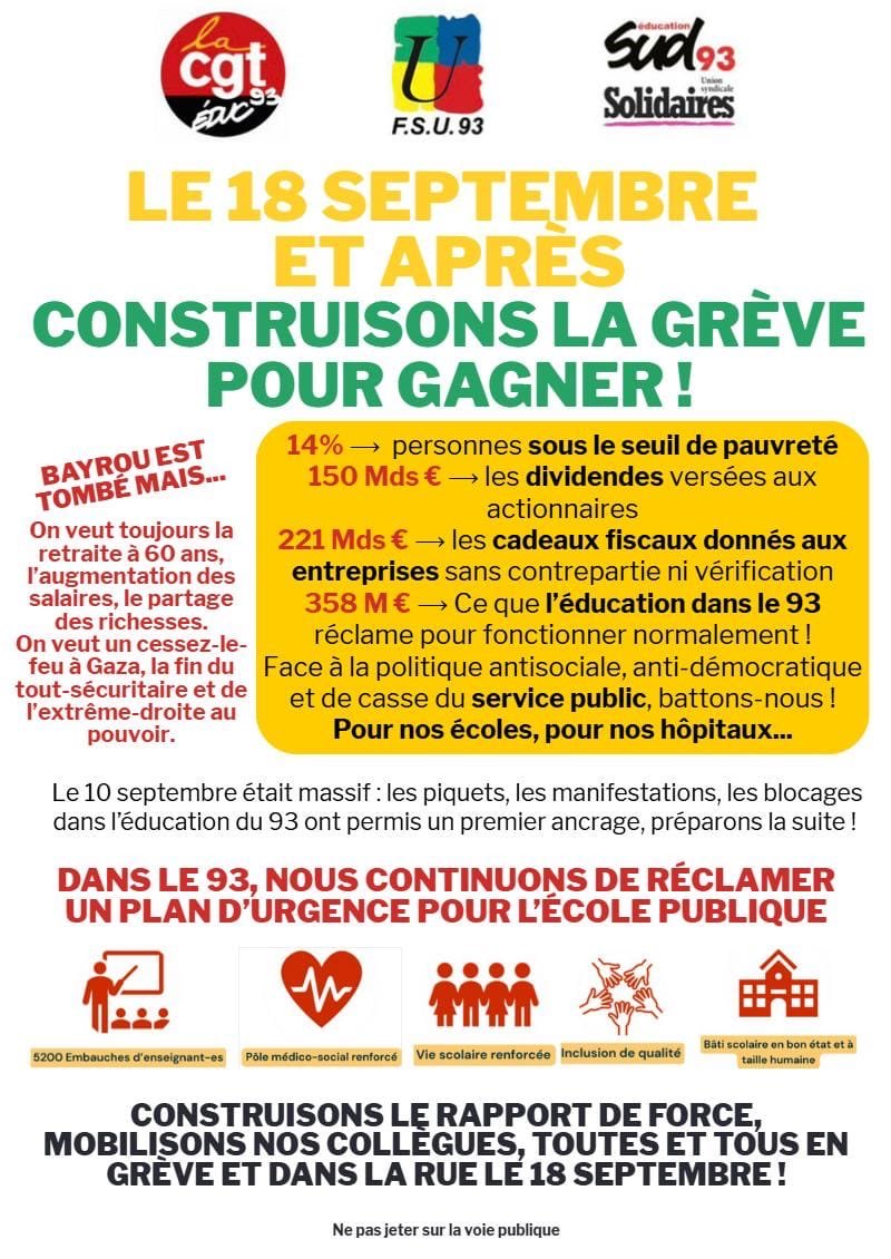Le 18 septembre et après, construisons la grève pour gagner – Appel IntersyndicalPublié le 12/09/2025