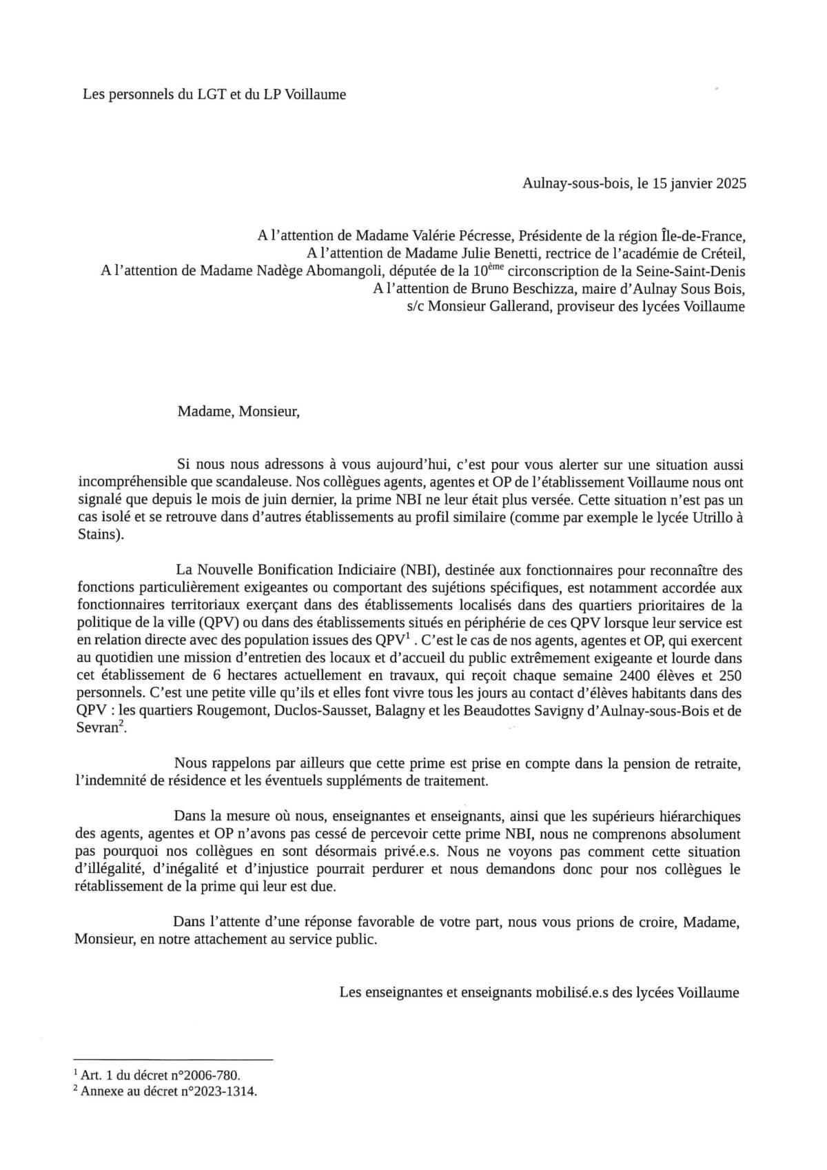 Télécharger le documentCourrier NBI des personnels du lycée Voillaume (format pdf)