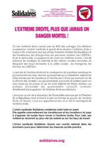 Communiqué de l'Union syndicale Solidaires du 9 juin 2024