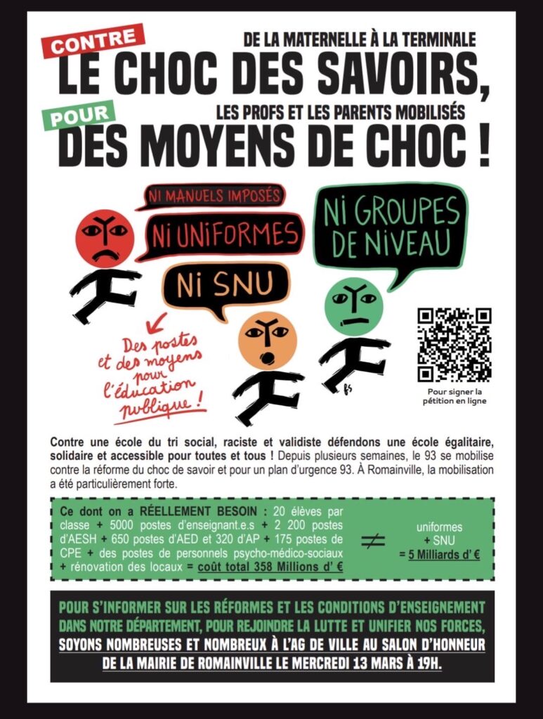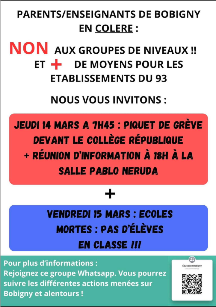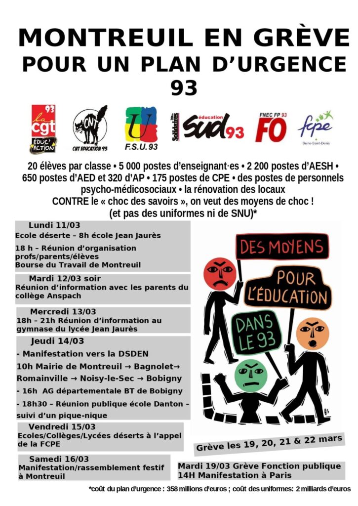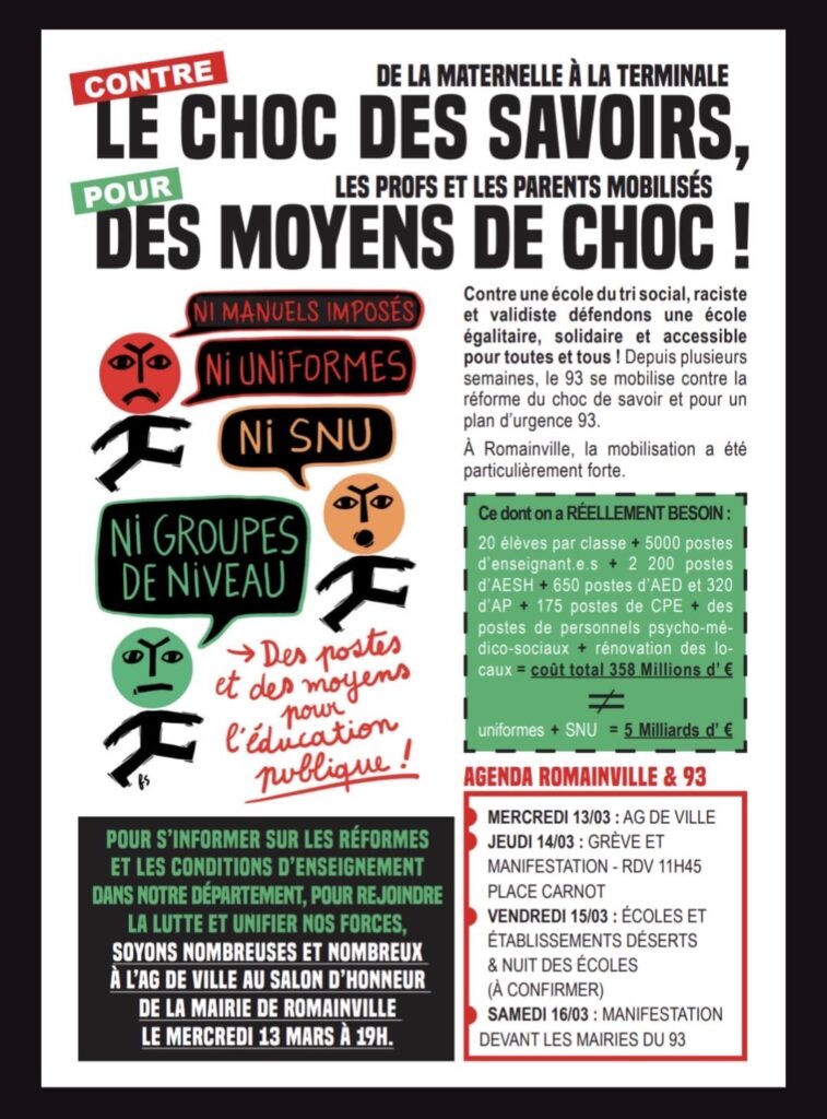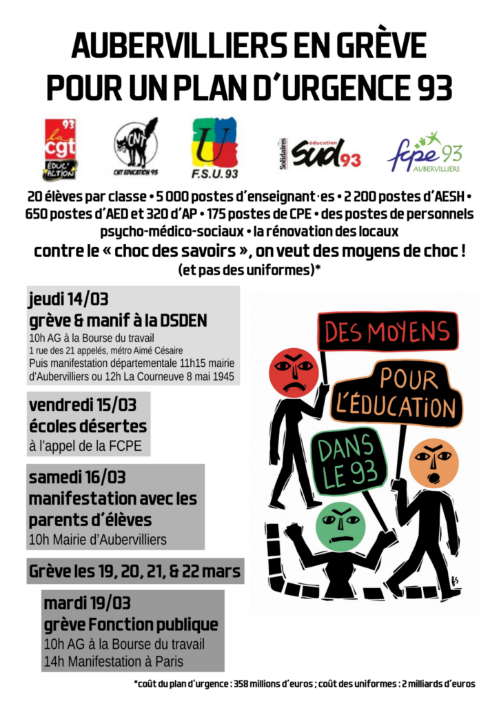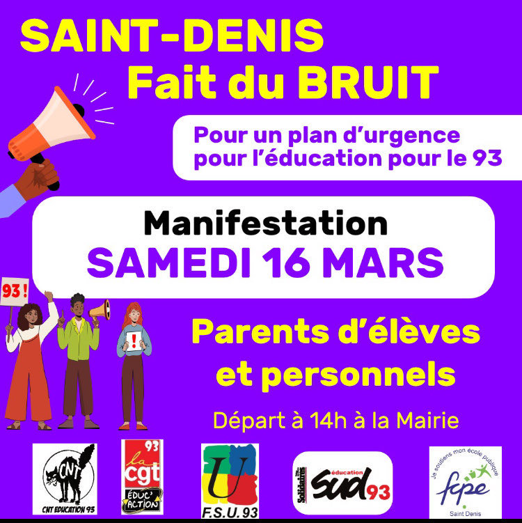 -🔥 ✊ 📣 Samedi 16 mars : Manifestation avec les parents d'élèves ! 10H Mairie d'Aubervilliers !