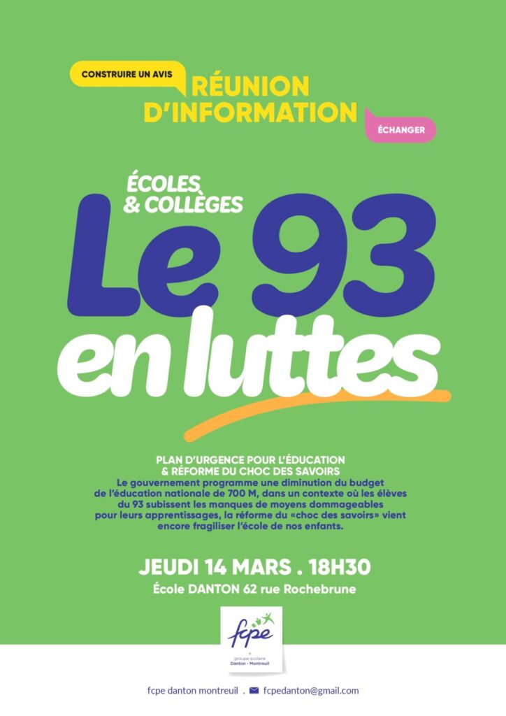 Jeudi 14 mars : 18h réunion d'information parent.es de l'école Danton.