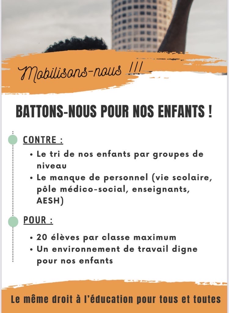 - dans le préau de l'école Jules Guesdes à 17h45: à l'initiative des parents FCPE et des camarades mobilisé·es, réunion parent profs pour le collège Triolet et les écoles Guesdes, Vallès et Pina Bauch.
