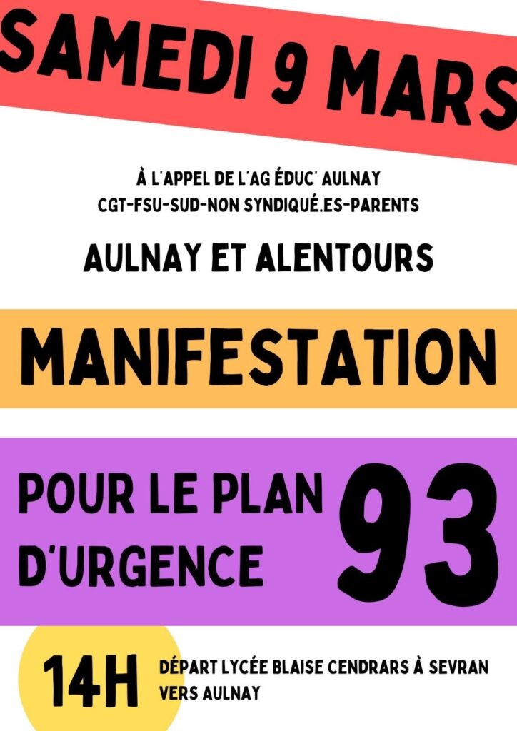 Samedi 9 mars : Manifestation pour un plan d'urgence dans l'éducation de Svran vers Aulnay !