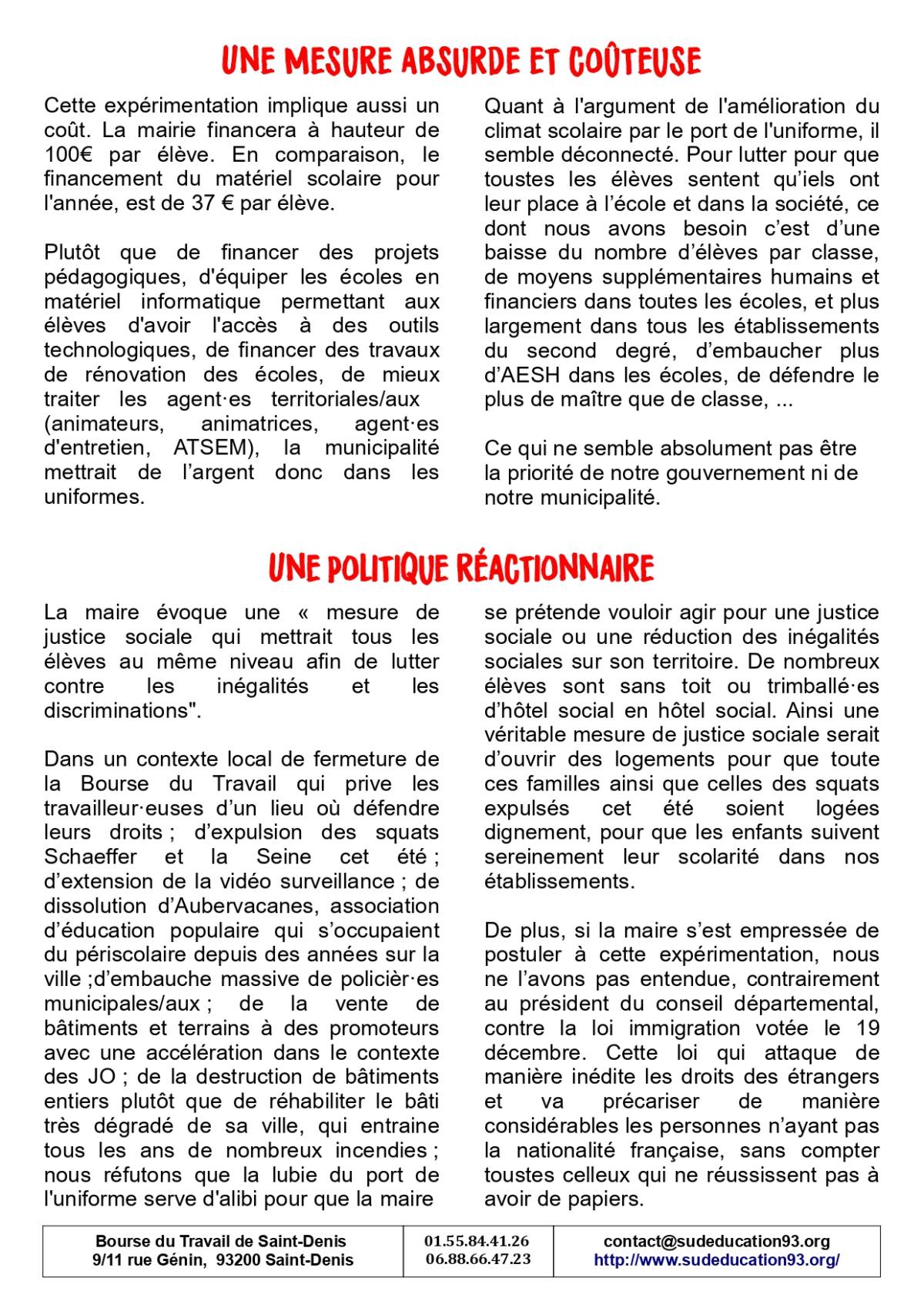Non à l’uniforme dans les écoles d’Aubervilliers !