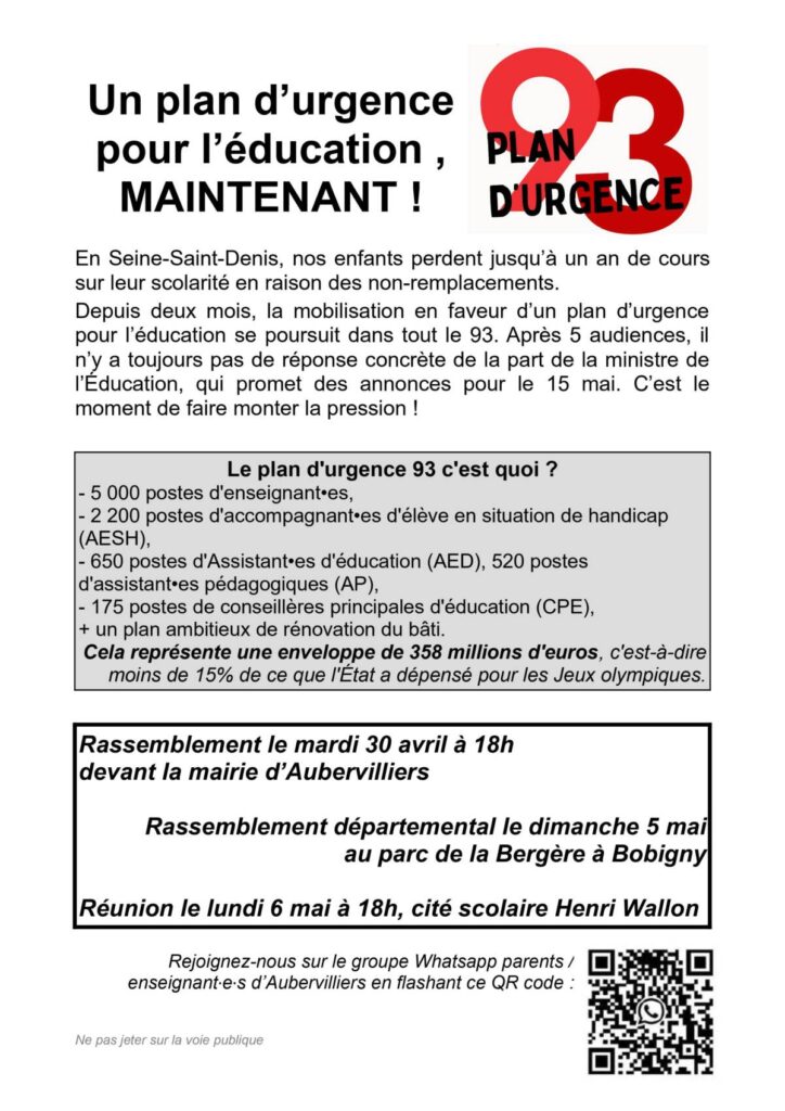 Tract Aubervilliers : Un plan d’urgence pour l’éducation, MAINTENANT !